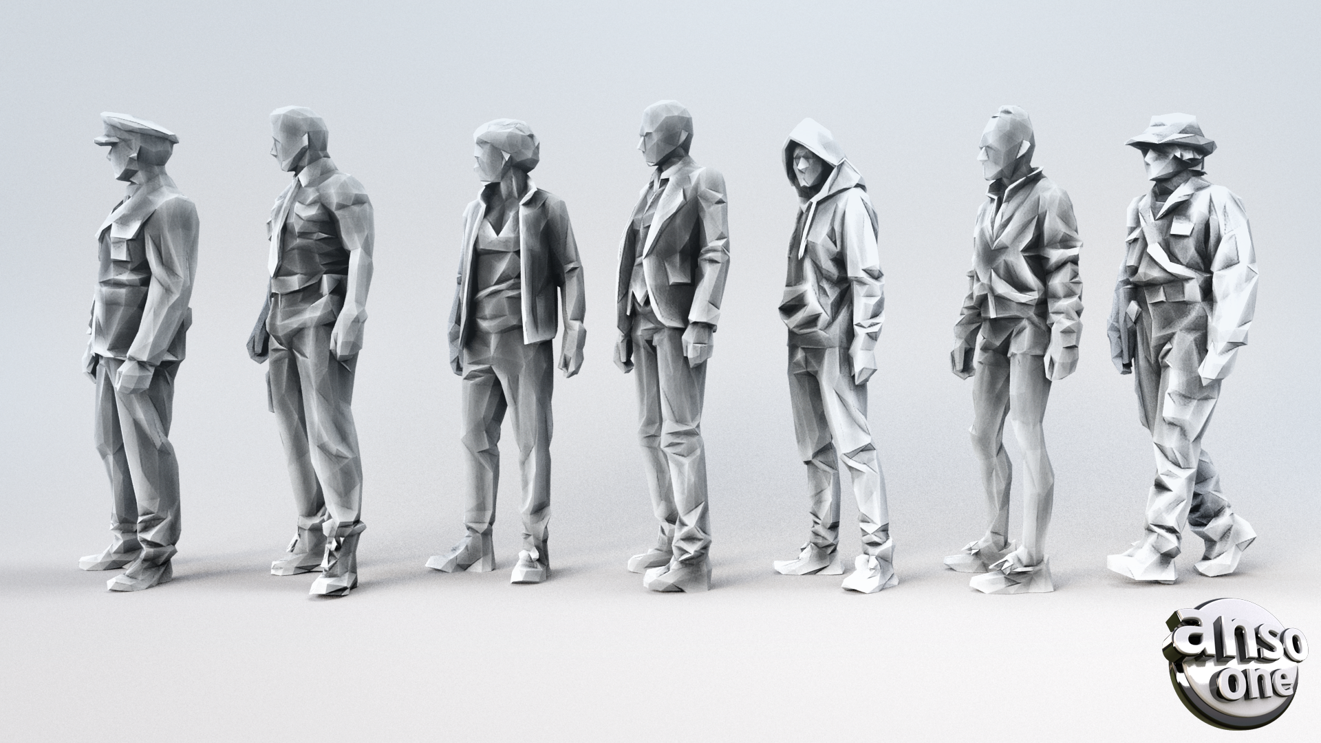 Featuring seven Male characters with stylized 1024px square textures per model, each designed with a maximum of 1,850 faces or fewer. These characters are lightweight, versatile, and fully compatible with 3D printing.