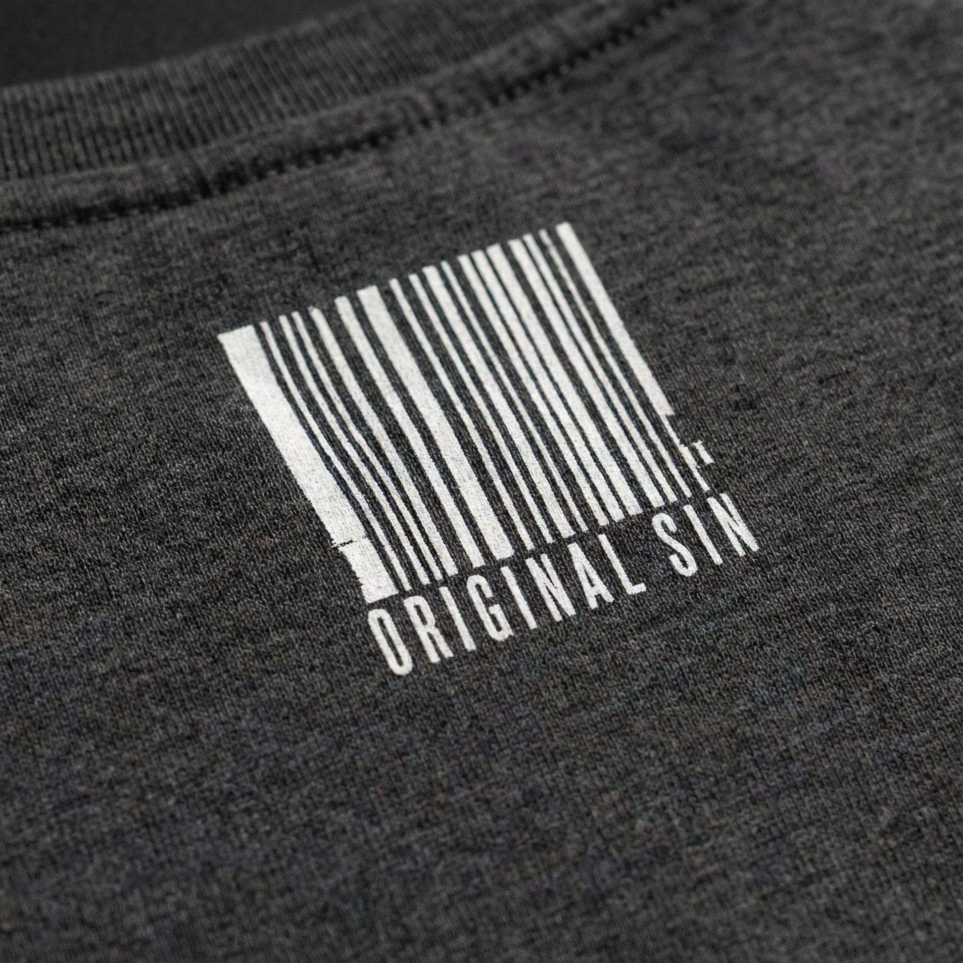Minimal on the surface, deliberate underneath. The barcode detail at the neck marks it as an original — not merch, not a costume, not an apology.
